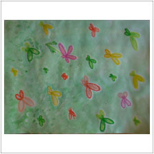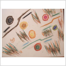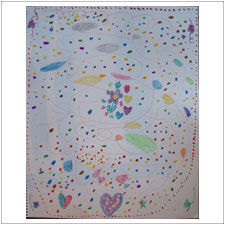 もう1枚,これは宝石箱のように光るきれいな模様です。そのこちゃんのなかに,きらきらとした気持ちが生まれているのでしょう。 |