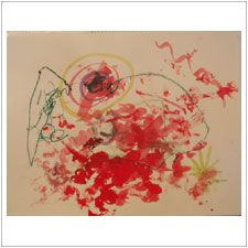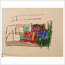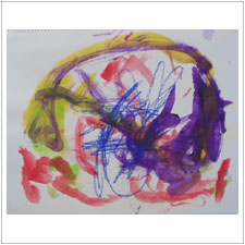 弟のまさくんも,手を動かして何枚も描きました。これは最後の方にできたもの,形が何かまとまってきています。いつも構成がきれいです。 |