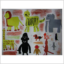 しょうくんは大好きな動物園のどうぶつたちをいっぱい描きました。こんな楽しいどうぶつたちと一緒なら,ずっとどきどきですね。 |
