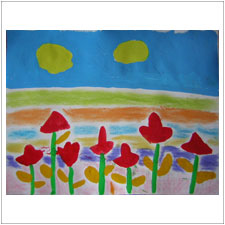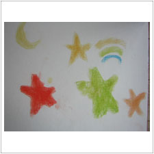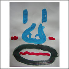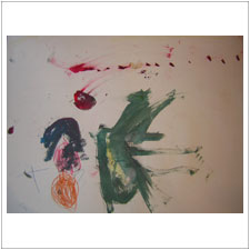 | 絵の具は初めての体験。ひとしきり,熱中して20枚くらい描きました。 |