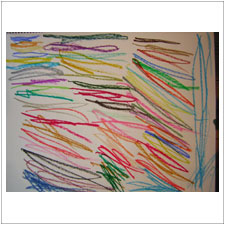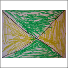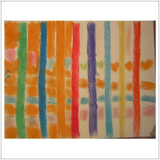 | そのこちゃんはもう1枚,リズミカルなパターンを描きました。お散歩の時のからだのリズムでしょうか? |
