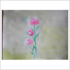 お母さんのふじこさんが初めて絵を描いてくれました。それもなんて清楚で美しい薔薇の花なんでしょう。何だかうれしいです。 |