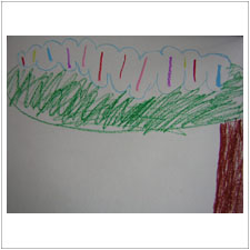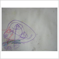 これは誰が描いたのでしょう?ひょっとしてお兄ちゃんのだいちゃん?とってもユニークで笑ってしまいます。シンボリックなデザインが素敵です。 |