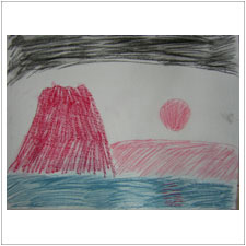 | お正月が明けてすぐ,けんちゃんは初日の出のイメージを描いてくれました。とても気持ちよくて,こころが凛とする感じです。 |