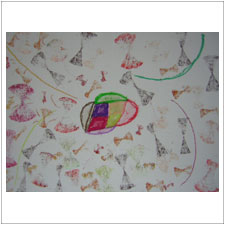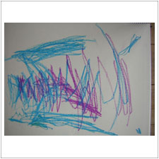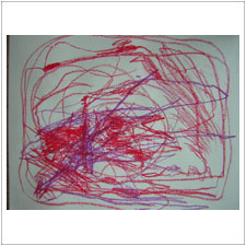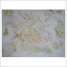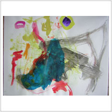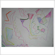 まさくんは,とにかくめいっぱい手を動かしています。何となくできた絵から,自分でメッセージを受け取ったのでしょうか? |