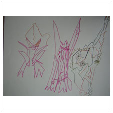 こうせいくんの絵は不思議な形です。しゃきっとした感じ,未来の感じ,宇宙のイメージがします。 |