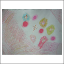 もう1枚は揺れる葉っぱの絵。そのこちゃんの絵には,いつもファンタジーの物語とゆらゆらと動いているリズムがありますね。 |