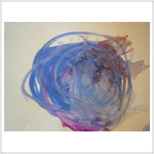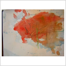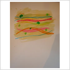外に出て気分を変えて,できました,いつもの波のモティーフ。クレヨンの上に水彩を載せて水を弾く様子を楽しんでおられました。