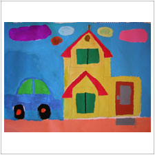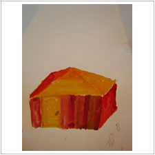 その後はお家の絵。きれいな煉瓦色です。サーカスのテントのような,夢のあるお家になりました。