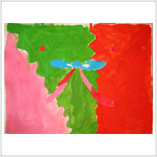 最後は,ちょっと前に描いていたカラフルで元気のある絵が還ってきた感じです。けんちゃんももうお兄ちゃんになりましたね。