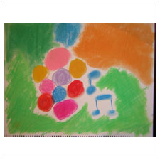 3枚目は音符のある楽しい絵。そのこちゃんのこころの中に流れていた音楽は何だったのでしょうね?