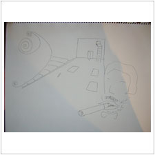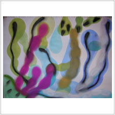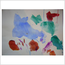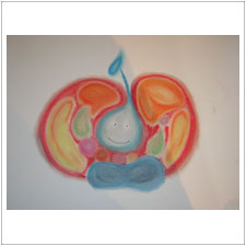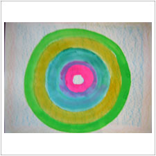 3枚目は元気いっぱい,いろんなモティーフが表れました。この中にいるのはゆきなちゃん自身?いろんな思いがあって,わくわくする絵ができましたね。