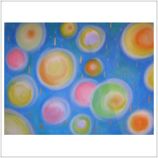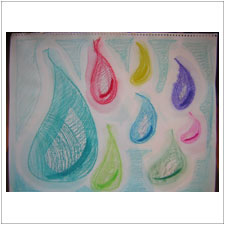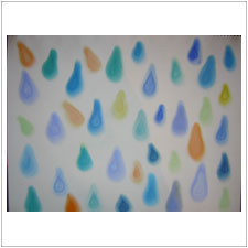 りょうこさん,2枚目は雨の雫を描きました。これも色使いが明るくて,雫が楽しい音楽を奏でているようです。