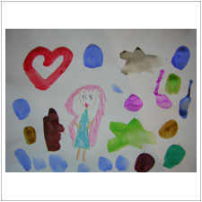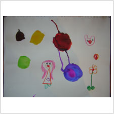 初めて見学に来てくれたゆきなちゃん&えりなちゃん姉妹とけいこお母さんです。ゆきなちゃん,初めは恐る恐る,遠慮がちに描いていました。これは妹のえりなちゃんの絵です。