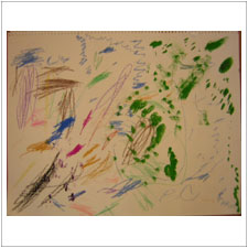妹のみどりちゃんは今日もお兄ちゃんのすることを全部まねしてみています。そのうちお兄ちゃんのような素敵な絵ができそうですね。