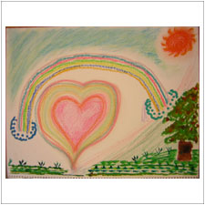 りょうこお母さんは明るいハートと虹の絵です。温かいお父さんと家族への愛情が伝わって来ます。