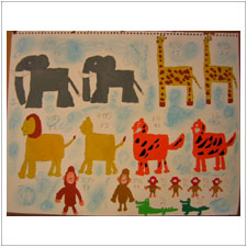 しょう君は得意の大好きな動物の絵です。今回は全部オスとメスがいます。みんなが帰った後,ぎんじ君がこの絵をほしがって大変でした。