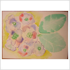 ゆみこさんは庭の紫陽花を描きました。水彩の淡い感じと紫陽花の解けるような色合いがマッチして,とても素敵な絵手紙ができそうですね。
