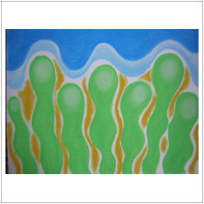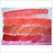 めいちゃんの絵は,大人っぽくなって来ました。これは秋の季節のイメージ。いろんな赤がありますね。