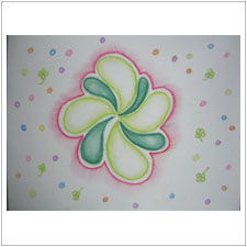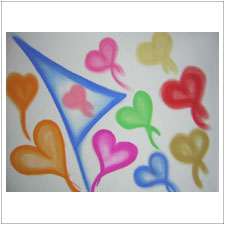 その後,さきこさんのもう1枚の絵は,幸せの四葉のクローバー。中からいろんなものが飛び出して,楽しい様子。これは思い描く未来?きっと叶いますよ。