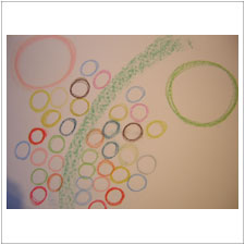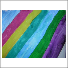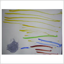 みはるちゃんも虹のイメージ。少し成長した絵ができましたね。めいちゃんの虹を見てきれいだなと思ったのかな?。