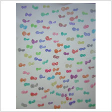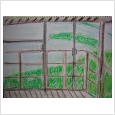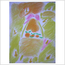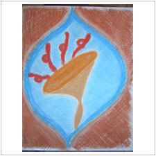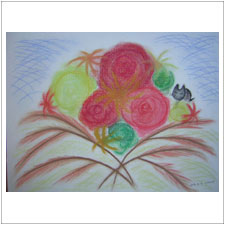 ようこさんはラッパ草?のような不思議な形を描きました。何かこころの中にあるものだそうです。落ち着きと包容力,温かく包んでくれて,耳を傾けてくれているような。