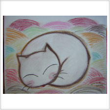 もう1枚,そらちゃんだけを描きました。どんな夢を見ているのでしょう?でも本当にネコって,だっこすると温かいですね。
