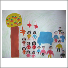 そのこちゃんファミリーは久しぶりです。温かい感じ,いろんなイメージが弾けているようです。ソフトパステルの色使いが温かいですね。