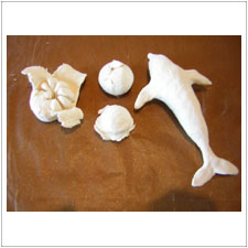さきこさんは,じつに細やか。みかんを剥いたところ,中の袋まで作ってあります,ハンバーガーもパン,パティ,レタスをひとつづつ。そしてイルカの曲線も緩やか。