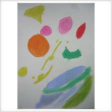 今日のみはるちゃんは,絵の具は赤をちょっとだけ。眠かったり,遊び過ぎて疲れていたり。これだけ集中できれば十分ですよ。