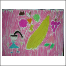 | みはるちゃんは,今日は1枚描いたらものすごく眠くなって,先に帰りました。この絵は夢の中だったのかなあ? |