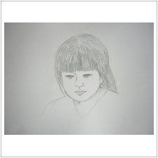 お父さんは,絵を描いているひびきちゃんを鉛筆デッサン。昔絵を描かれていたのかな?と思うほど,さらさらと。素敵です。 |