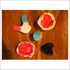 ひびきちゃんは粘土も挑戦。ウサギの耳がくっつかなくて,困ってしまいましたが,たくさん好きなものを作って,色も塗って,ラブリー。 |