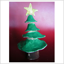 ゆみこさんのツリーは,おおらかで明るくて元気で,今にも歩き出しそうです。きっと陽気なクリスマスがぱたぱたとやって来るのでしょう。