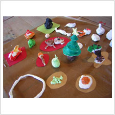 ゆかちゃんは粘土でクリスマスツリーと小さな動物づくりに熱中。ディティールまで造り込んであって,感動します。