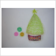くみこさんは今日はどうも思いどおりの感じが描けなくて,何度も描き直されました。素朴でひっそりと佇んだツリー,何となくイメージのしっぽがつかめたような。