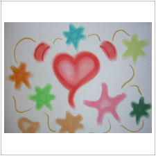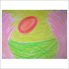 よしこさんは,宇宙のエネルギー,温かい手のひら,支え,希望。。。いろんなイメージが湧いて来る絵ができました。何だかこちらまで元気をもらえているようです。