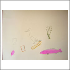 今までずっと2人の絵を見ていたひでパパ,たまらず初めて鉛筆を持ちました。ぎんじくんにお魚のお手本を見せたかったのかな?子どもの頃の気持ちに戻って,これからも楽しんで描いてくださいね。