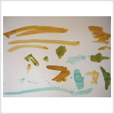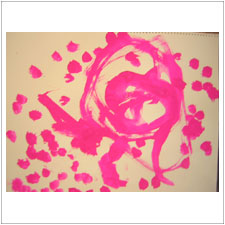 みどりちゃんはとても集中してたくさん絵を描きました。とにかく,筆と水入れが大好き。この2つを自在に操って,抽象画をしゅぱしゅぱと描いていきます。今日は何ができたかな?
