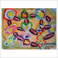 ゆみこさんは賑やかで元気なモティーフが,ぽんぽんと画面がら飛び出して来そうです。何か,こころが弾むような出来事がおありだったのでしょうか?