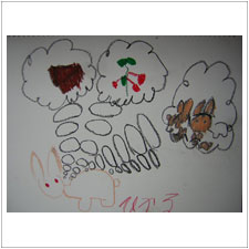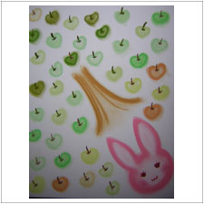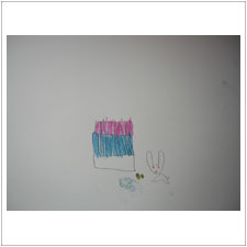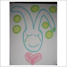 ぎんじくんも小さなうさぎを描きました。今日は何かそわそわして気持ちが落ち着かなかったようです,新しいお友だちが気になったのかな?