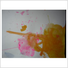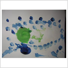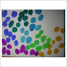 みはるちゃん,なんともきれいなお花畑のような絵ができました。この中にうさぎさんやみんながいるのかもしれませんね。