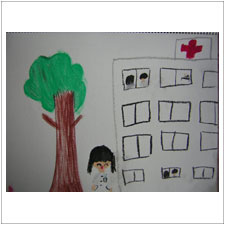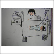 病院のいろんなことをよく観察してますね。このあと,みはるちゃんがこの絵を気に入って,そばを離れなかったのが印象的でした。 |