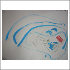 | みはるちゃんのゆめは,とてもブルーできれいな海の中?でしょうか。すいすいと泳いでいる感じがします。 |