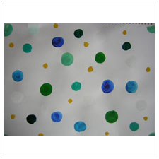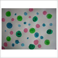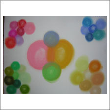 あかねさんはゆめのようなきれいな色の水玉を描いてくれました。ゆめって,形や色があるとしたら,実はこんなのかもしれませんね。 |