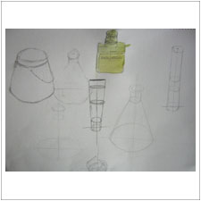 ひでぱぱは今日はデッサン。丸いもの,四角いものの描き方を習得。水彩絵の具で着彩したら,何だか図鑑のように素敵になりました。 |