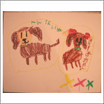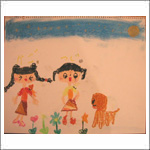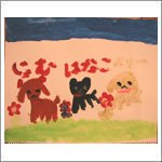 | H子ちゃんは大好きな犬のジャミちゃんとお友だちを描きました。 |