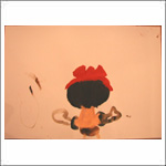 S子ちゃん、いつもの形に色がつきました。これは人の顔と髪の毛なのね。 |