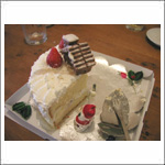 | 制作の後はみんなでクリスマスケーキ。あ、写真取る前に食べちゃった。 |