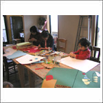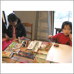 子どもたちのママもいっしょに描いたり、おしゃべりしたり。思い思いの時間を過ごしています。 |
